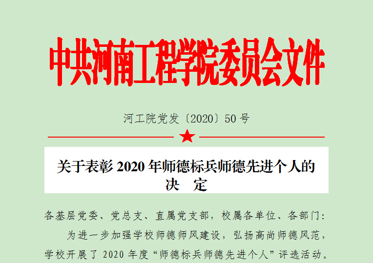 成立党委教师工作部,统筹负责教职工师德师风建设和思想政治教育工作,建立健全教育、宣传、考核、监督与奖惩相结合的师德建设工作机制。开展“牢记育人使命,志做‘四有’教师”师德主题教育活动、2020年师德先进个人和师德标兵评选、最美教师评选、师德教育主题征文、师德师风优秀案例评选等系列活动,评选出“师德标兵”10名,“师德先进个人”24名,最美教师 1名,进一步凝聚师德正能量,增强教师教书育人的责任感和使命感。