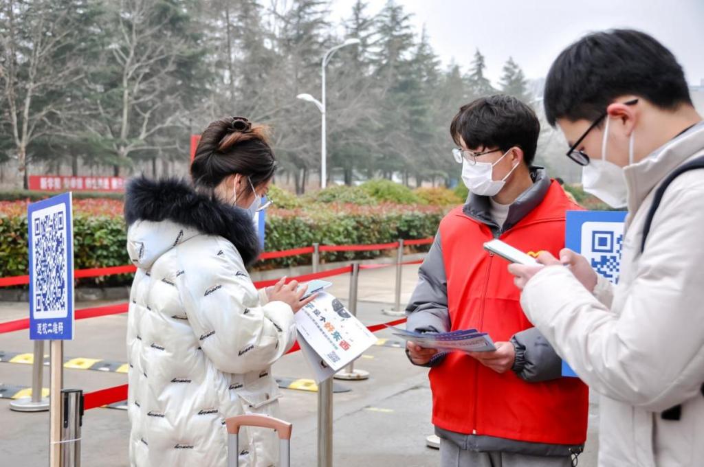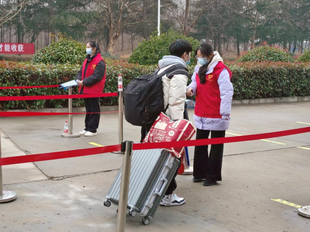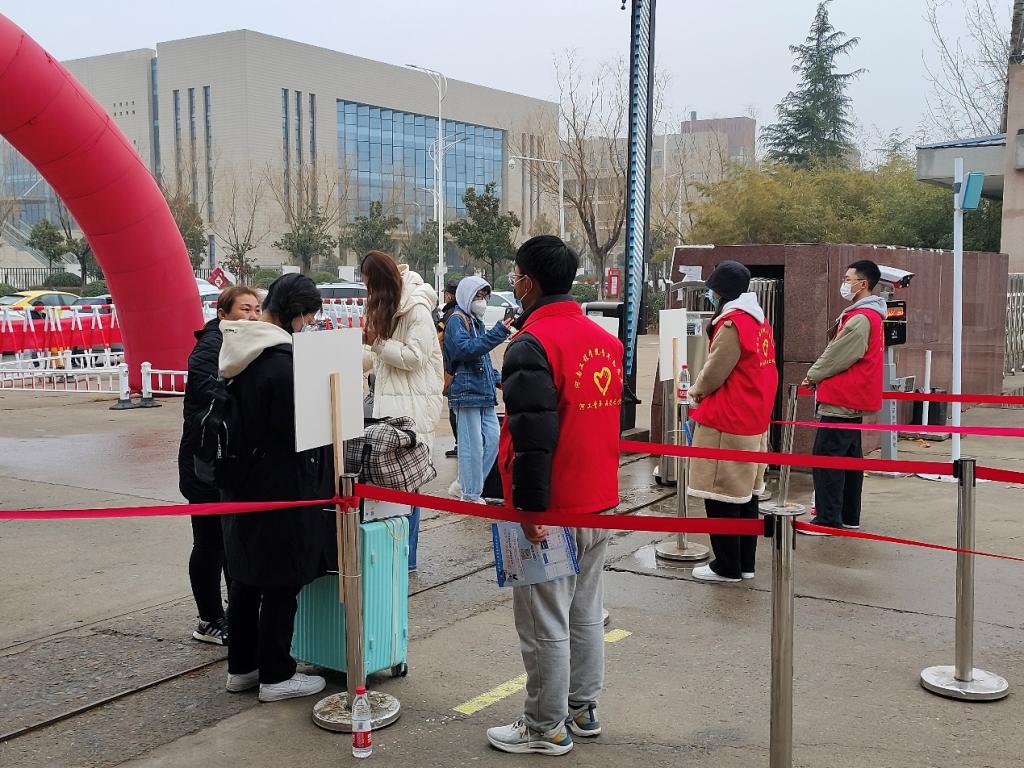 学校在报到现场设置了入校码查验区、体温测量区、临时观察点为学生们提供入校信息查验、体温检测、温暖祝福、行李搬运等贴心服务,以干净整洁的校园环境、温暖贴心的返校氛围、安全细致的服务保障来迎接河工学子的归来。