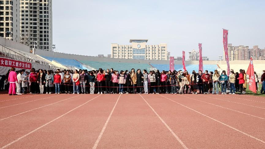 在第113个“三八”国际妇女节来临之际,为丰富和活跃女教职工文化生活,提高女教职工身心素质,3月1日下午3:00校工会分别在南校区、桐柏校区运动场举办了beat365正版唯一官网第十届庆“三八”女教工健步走活动。校领导袁静波、王生交、李德耀和500多名女教职工一起参加了活动。