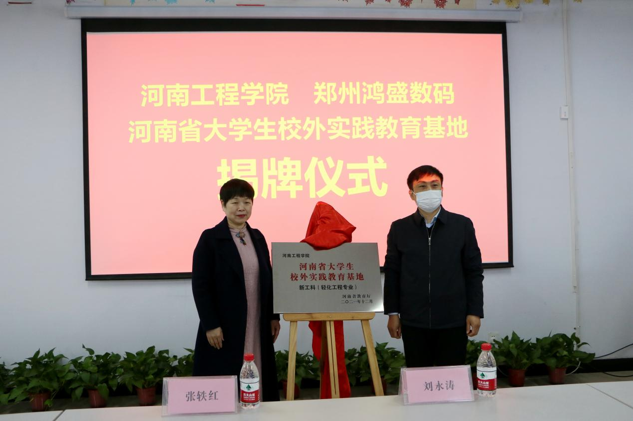 座谈会后,刘永涛和张轶红共同为beat365官网轻化工程专业与郑州鸿盛数码科技股份有限公司共建的河南省大学生校外实践教育基地揭牌。