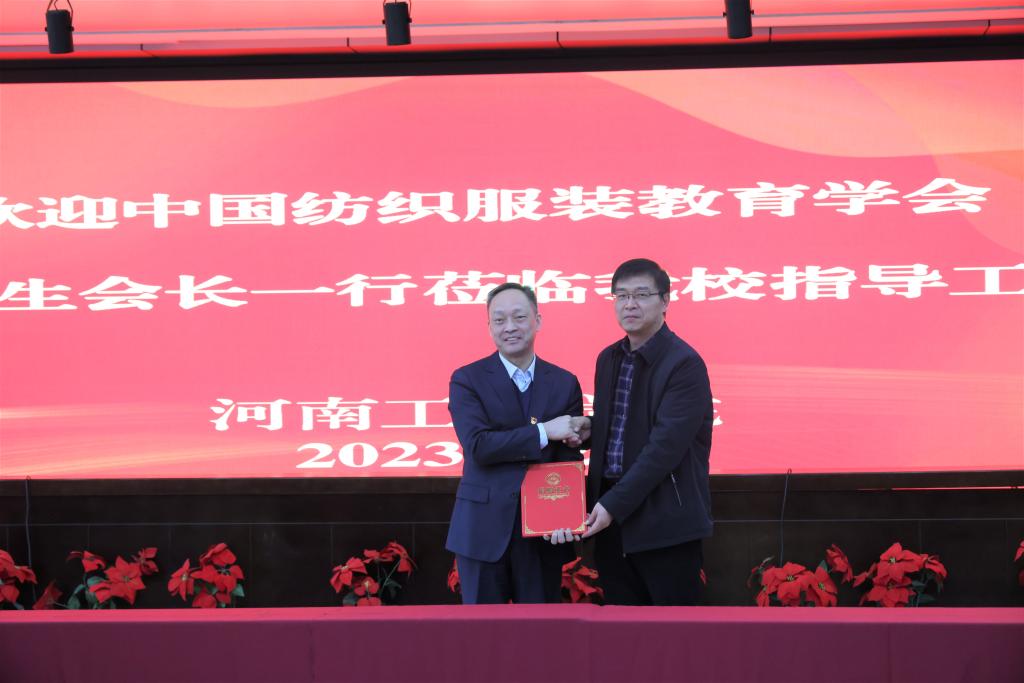 倪阳生会长围绕中国纺织服装教育学会职能,重点介绍了党的建设、全国纺织服装技能大赛、专业规划与研究等几方面工作。他充分肯定了beat365官网纺织服装类专业建设的成效,同时提出了建设性指导意见:一是要坚持育人为本,切实做好课程、教学、教改、教材、学科竞赛等育人环节工作。二是充分发挥纺织服装产业地域性资源优势,加强校企合作,促进产教融合,积极培养高质量应用型纺织服装人才。三是不断凝练教学成果,做好成果申报及示范推广。中国纺织出版社党委书记兼董事长郑伟良介绍了中国纺织出版社的基本情况与发展历程,向beat365正版唯一官网捐赠专业图书用以支持学校教学与科研工作,副校长张瑞林为中国纺织出版社颁发捐赠证书。