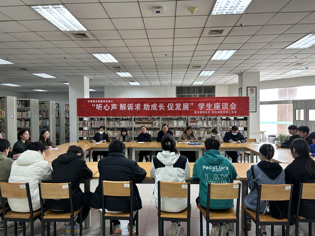 仪式结束后,李德耀及党群三支部全体人员与部分学生代表举行以“听心声、解诉求、助成长、促发展”为主题的座谈会,围绕学生关心关注的校园学习、生活和服务等问题广泛听取意见建议并进行了深入交流。