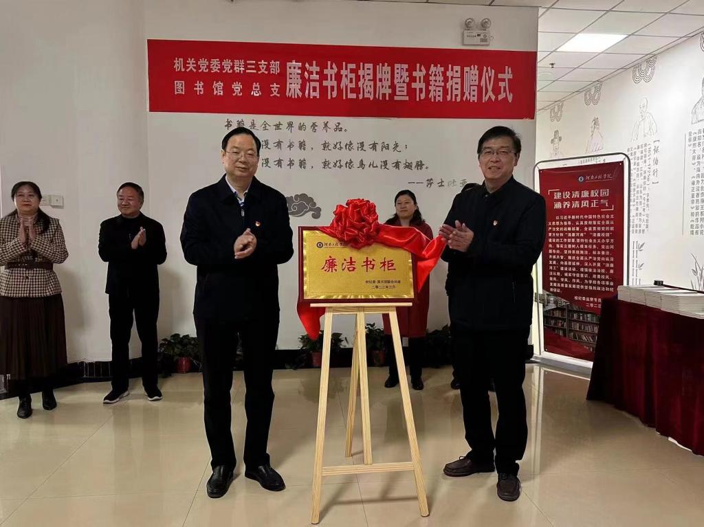 为认真贯彻落实党的二十大精神,深入学习贯彻习近平总书记关于大力弘扬雷锋精神的重要指示,扎实推动清廉河工建设行动,3月22日,在第60个学雷锋活动月开展之际,党群第三党支部和图书馆党总支开展支部“1+1”联合主题党日活动,在校图书馆二楼大厅举行廉洁书柜揭牌暨书籍捐赠仪式并组织学生代表开展座谈会。有关职能部门负责同志、二级党组织纪检委员、党群第三党支部全体党员以及图书馆党总支和部分学生代表共同参加活动,校纪委书记李德耀、副校长张瑞林出席活动并分别发表致辞。仪式由图书馆党总支书记方月主持。