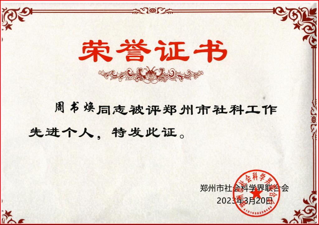 近日,郑州市社科联五届五次全会在郑州博物馆召开。会议传达学习了省社科联九届五次全会精神和全市宣传部长会议精神,总结回顾全市社科联系统2022年工作,部署安排2023年工作,并对2022年度全市30个社科工作先进集体、55名先进个人进行了表彰。beat365官网科研处获得“郑州市社科工作先进集体”荣誉称号,科研处副处长周书焕荣获“郑州市社科工作先进个人”。