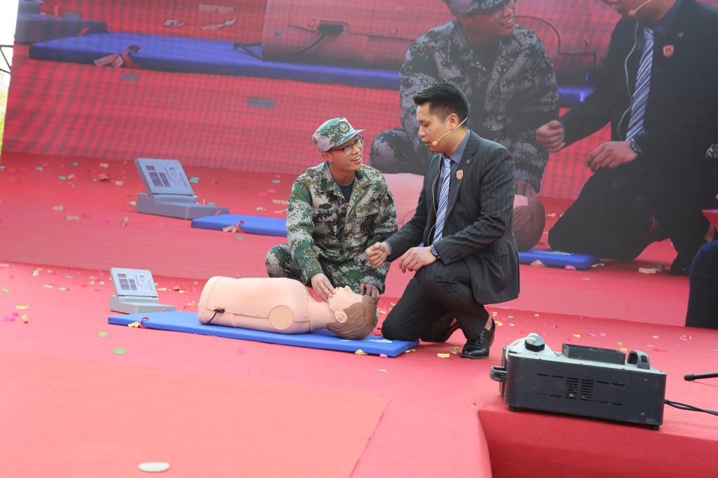 启动仪式结束后,校领导在现场师生的见证下为国家体育总局游泳指导员、救生员职业资格培训基地揭牌。CPR培训也在活动现场进行,这为全民健身月助力。赛亚菲特健身课程总监张博带领同学们学习了心肺复苏技术,教授了急救知识和技能。