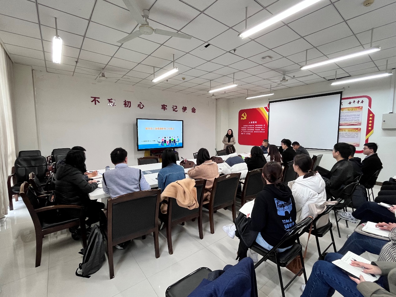 心理健康中心主任李雪英介绍了学校心理健康教育“五位一体”工作格局和“4321”心理育人体系,强调了心理健康教育对辅导员工作的重要指导意义。并在分析学生心理健康状况的基础上,从政策、敏感点、异常学生处理注意事项、帮助学生建立社会支持系统等多个方面,讲授了心理危机干预、问题处置的工作方法。