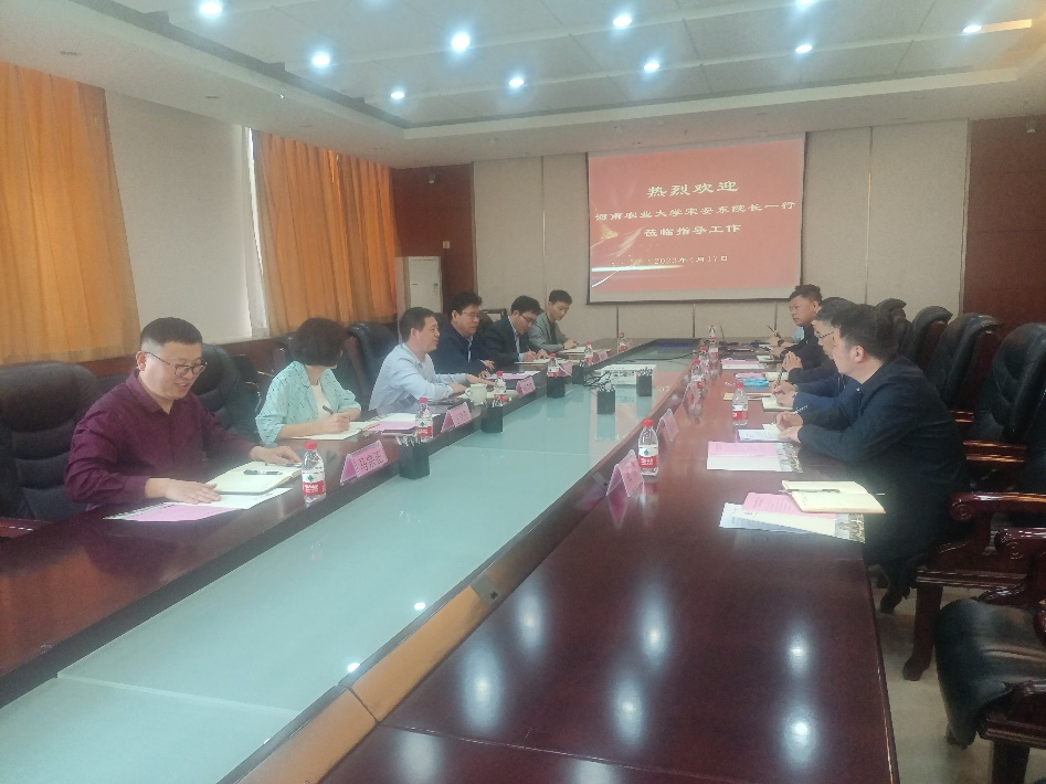 4月17日,河南农业大学研究生院院长宋安东、副院长郝四平及学位点管理办公室副主任李振亚来beat365官网就硕士授权单位建设及联合培养研究生等工作进行交流指导。副校长焦有宙、各硕士学位授权培育点负责人及发展规划处相关人员参加了交流。
