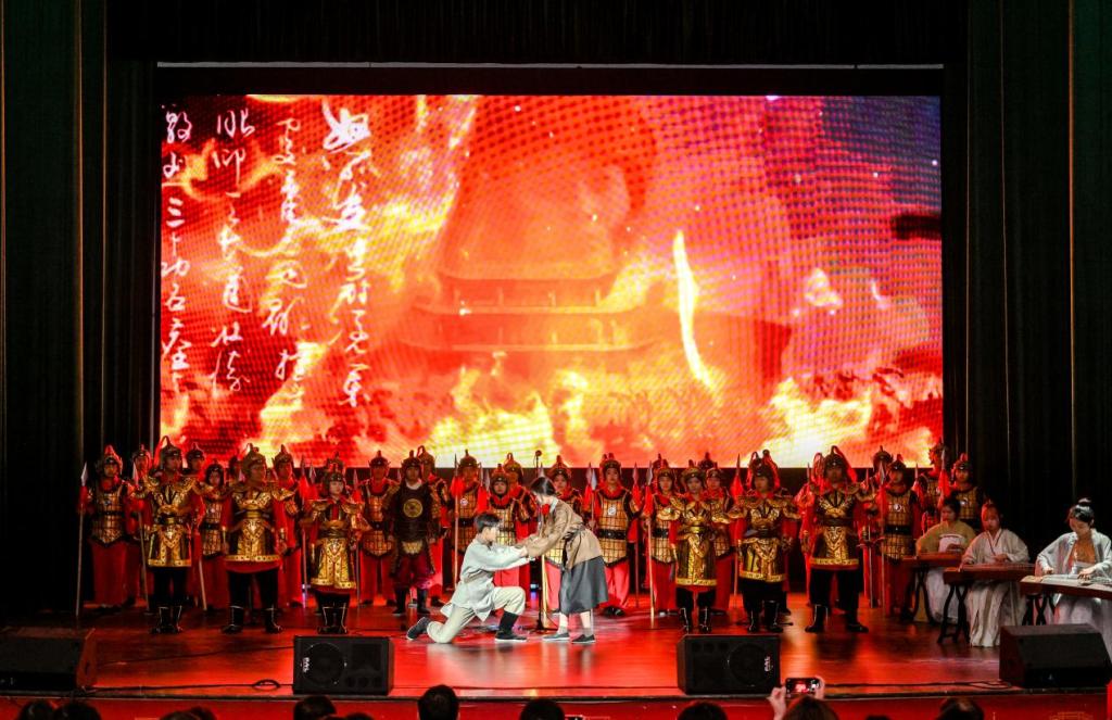 随后,晨曦文艺社和大学生艺术团的师生们为参加开幕式的校领导及师生代表表演了舞台剧《逆旅》和情景诗朗诵《满江红》等精彩节目。