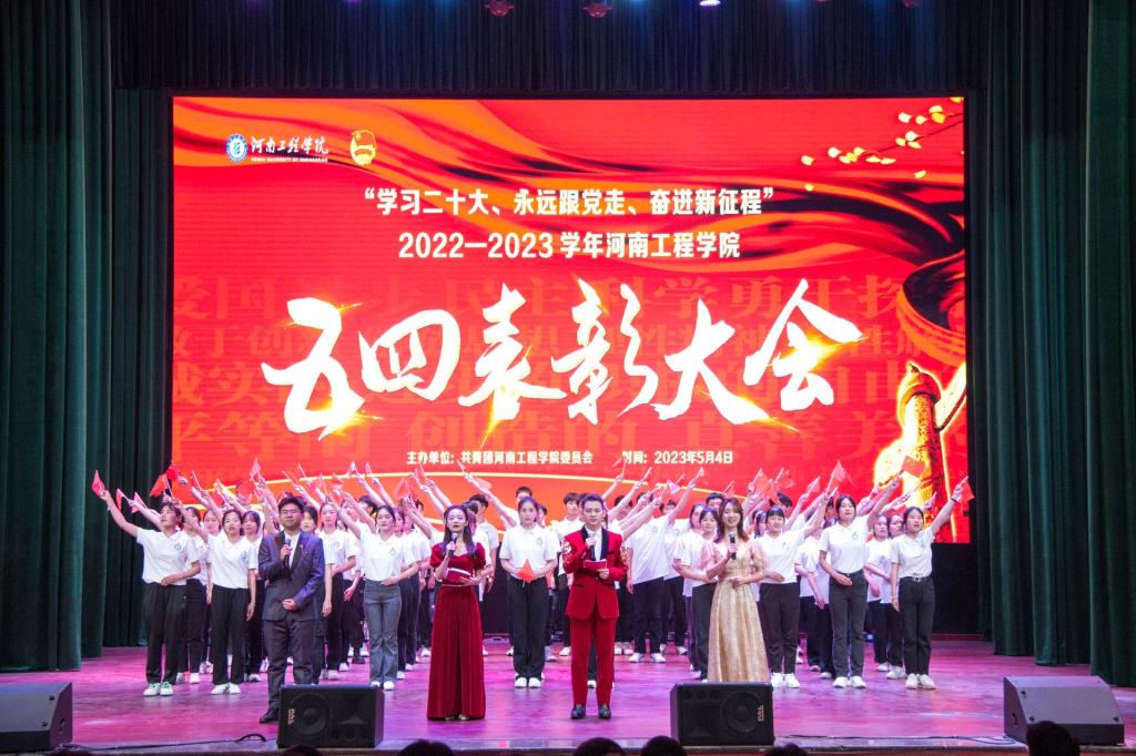 为大力弘扬五四精神,展现“河工”青春风采, 5月4日下午,“学习二十大、永远跟党走、奋进新征程”2022—2023学年“五四”表彰大会在西校区创新创业中心礼堂隆重召开。校党委书记刘永涛、党委副书记袁静波,beat365官网校外辅导员、靖宇县人民政府顾问马继民(杰出校友杨靖宇将军嫡孙)出席会议,党委办公室、党委组织部、党委宣传部、党委统战部、党委学工部、校团委负责同志及各学院分团委书记、辅导员、青年学生代表近500人参加会议。