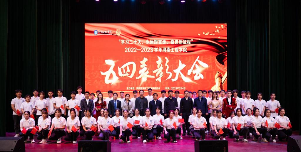 大会在庄严肃穆的国歌中拉开帷幕。会上袁静波宣读了《共青团河南省委关于表扬河南省五四红旗 团委(团支部)、河南省优秀共青团员、河南省优秀共青团干部的决定》和《共青团beat365正版唯一官网关于表彰2022-2023 学年优秀共青团员、优秀共青团干部、五四红旗团委(团支部)、青年大学习优秀学习单位、优秀新媒体个人和杨靖宇标兵的决定》,五四红旗团委代表徐荣敏老师、杨靖宇标兵代表石梦豪同学和优秀共青团学生干部代表郭豪杰作典型发言,与会领导为获表彰单位代表和个人进行了颁奖。