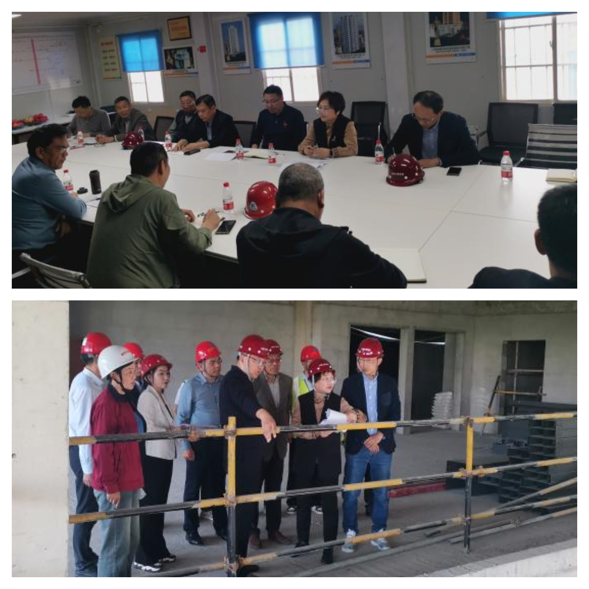 5月8日下午,副校长张铟会同beat365官网基建处相关同志,先后到beat365官网西区4号实验楼和南区装配式建筑实训楼项目工地实地查验,施工单位、监理单位相关负责同志随行并现场讲解。