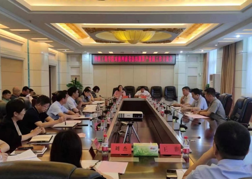 为积极对接、主动融入河南省现代化产业体系构建、重点产业链培育工作,大力推进beat365正版唯一官网对接河南现代产业体系“融链行动”,7月3日下午,beat365官网在综合楼十二楼会议室召开对接河南省纺织服装产业链工作交流会。河南省纺织行业协会常务会长袁建龙、副秘书长杨超,新乡化纤股份有限公司总经理季玉栋,校党委书记刘永涛及副校长焦有宙出席会议,校长办公室、人事处、教务处、科研处、发展规划处、创新创业学院等部门负责人,纺织工程学院、化工与印染工程学院、服装学院、材料工程学院、艺术设计学院等二级学院书记、院长及相关研究中心负责人参加会议。会议由校长李利英主持。