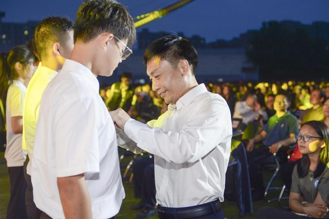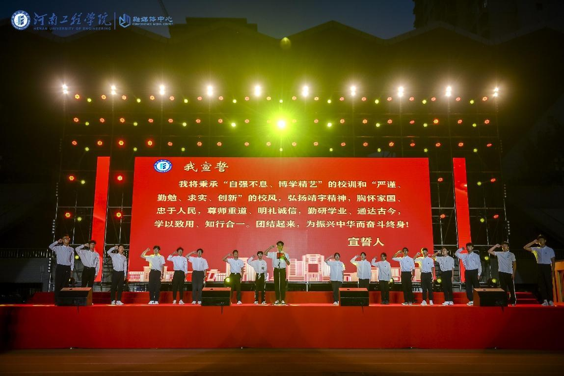9月20日晚,beat365官网2023级新生开学典礼暨迎新晚会,采用线上线下相结合的方式,在龙湖校区南区体育场盛大举行。学校全体校领导、中层干部、全体辅导员、2023级全体新生和校友代表参加了典礼。