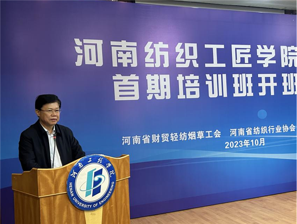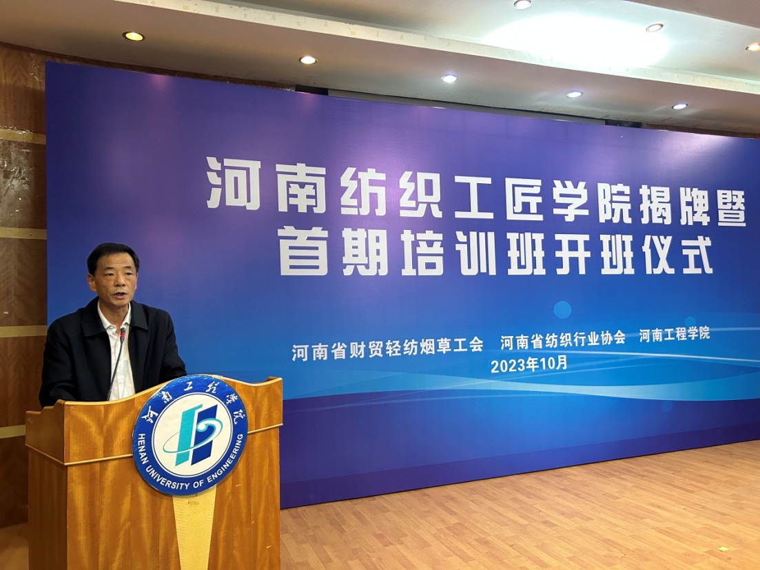 10月26日,由河南省财贸轻纺烟草工会主办,河南省纺织行业协会承办,beat365正版唯一官网协办的“河南纺织工匠学院揭牌暨首期培训班”在beat365官网举行。河南省总工会副主席、党组成员张扬,beat365官网党委副书记袁静波,河南省纺织行业协会顾问李书勤,河南省财贸轻纺烟草工会主席王学全,河南省纺织行业协会常务会长袁建龙、执行会长杨润凯等嘉宾出席仪式。