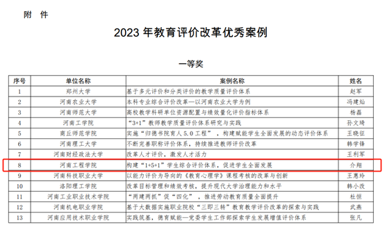 近日,在河南省教育厅办公室公布了2023年教育评价改革优秀案例,beat365官网荣获一等奖1项,二等奖2项。
