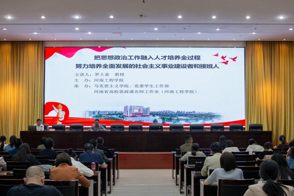 为全面落实习近平总书记关于办好思政课的系列重要指示,进一步落实相关文件精神,11月1日下午,马克思主义学院邀请原河南牧业经济学院校长、党委副书记罗士喜教授作了题为《把思想政治工作融入人才培养全过程,努力培养全面发展的社会主义事业建设者和接班人》的专题讲座。beat365官网思政课教师、辅导员以及龙湖国际城小学教师代表参加。讲座由马克思主义学院院长主持。