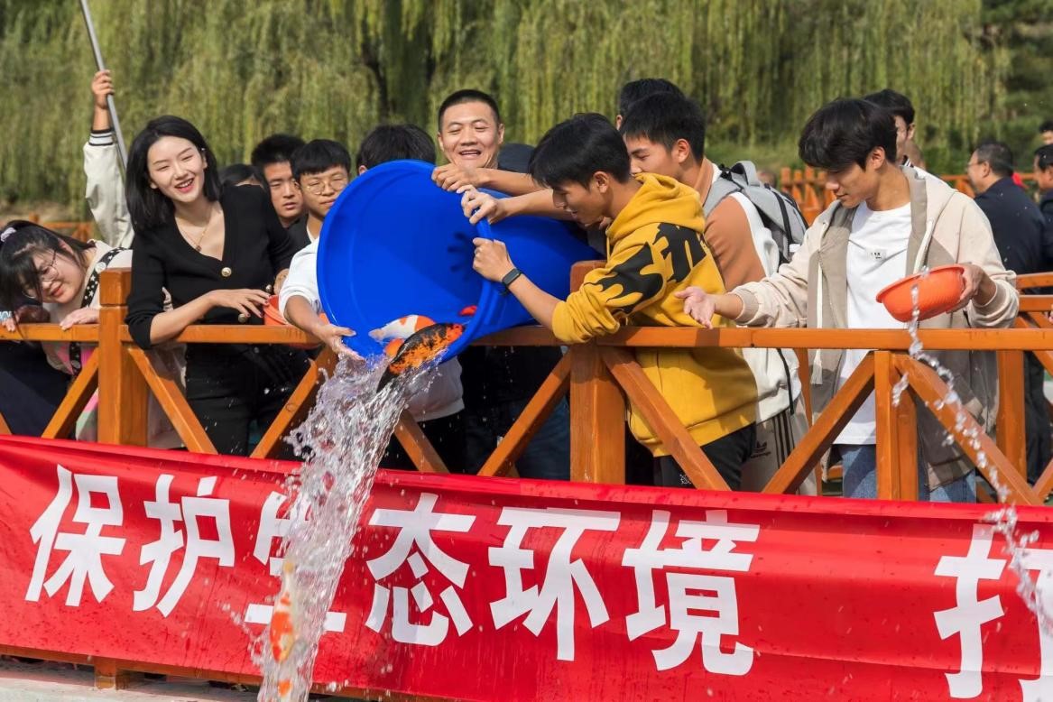 秋冬的金黄,洒满校园每个角落,明月湖畔迎来了“新客人”。近日,学校开展了“保护生态环境 打造美丽校园”活动,师生们将大白鹅、鸳鸯鸭和鱼放入明月湖中,为美丽的校园增添一道亮丽的风景。