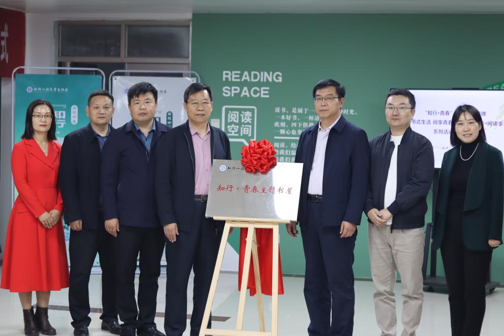 在热烈的掌声中,王生交和张瑞林共同为书屋揭牌,所有与会领导、嘉宾一起参观了“知行·青春”主题书屋。