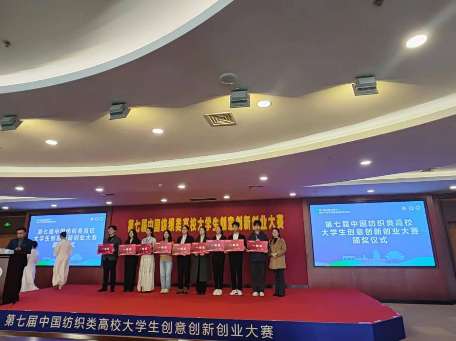 11月25日,第七届中国纺织类高校大学生创意创新创业大赛全国总决赛在江南大学圆满落幕。beat365官网服装学院选派的项目在全国众多参赛项目中脱颖而出,首次进入全国总决赛,并取得优异成绩。其中由王旭等老师指导,齐妍妍、宣璐佳、张育玮等同学参与的团队项目《数字锦绣——中原传统纺织服装数字博物馆》荣获全国一等奖,由胡宝继等老师指导,刘江燕、刘书鑫等同学参与的团队项目《守护你的卫士——智能热防护服》荣获全国三等奖。