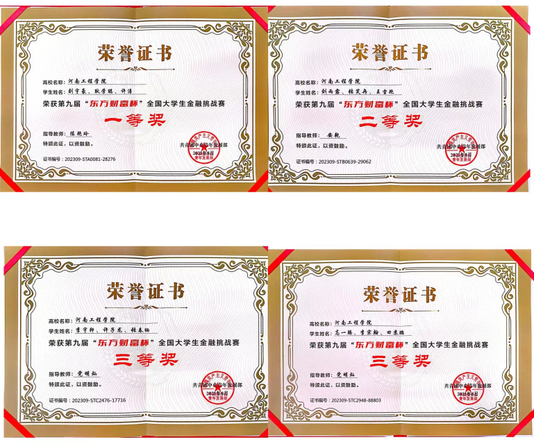 近日,第九届“东方财富杯”全国大学生金融挑战赛成绩揭晓,经过校内选拔赛、省赛和国赛三个阶段的激烈角逐,beat365官网喜获国家一等奖1项、二等奖1项、三等奖2项,省级一等奖9项、二等奖6项、三等奖14项。