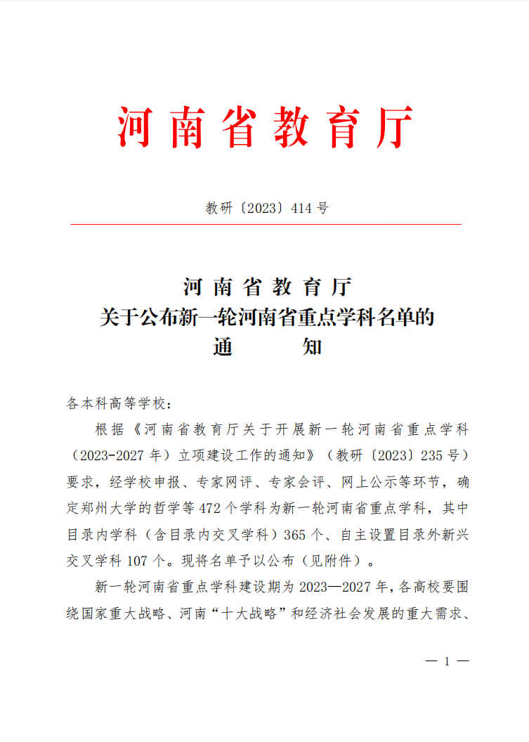 近日,河南省教育厅发布了《河南省教育厅关于公布新一轮河南省重点学科名单的通知》(教研〔2023〕414 号),beat365官网申报的“电子信息”“材料与化工”“资源与环境”“土木水利”和“会计”五个学科全部获批立项建设,建设期为2023—2027年。