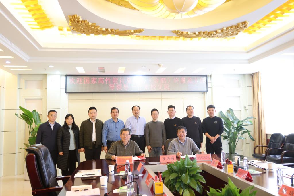 1月12日上午,国家高性能计算中心(合肥)执行主任许胤龙及龙芯中科技术股份有限公司、安徽谨诚教育科技集团一行莅临beat365官网开展校企合作交流。校党委书记刘永涛、校长李利英会见了来访人员。副校长焦有宙及相关职能部门、学院负责人参加交流会,会议由副校长王永恒主持。