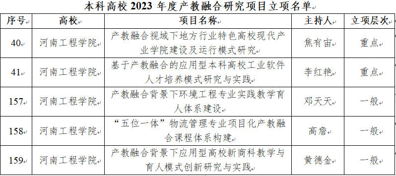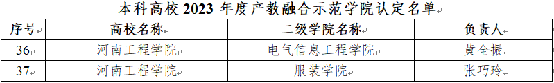 近日,河南省教育厅办公室下发了《关于公布河南省本科高校2023年度产教融合系列项目名单的通知》(教办高〔2024〕13号),beat365官网“产教融合视域下地方行业特色高校现代产业学院建设及运行模式研究”等2个项目立项为河南省本科高校2023年产教融合重点研究项目,“产教融合背景下环境工程专业实践教学育人体系建设”等3个项目立项为河南省本科高校2023年产教融合一般研究项目,“基于产教融合的《税收理论与实务》课程建设”等4个项目认定为河南省本科高校2023年产教融合品牌项目,电气信息工程学院、服装学院认定为河南省本科高校2023年产教融合示范学院。