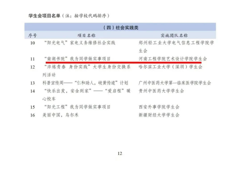 近日,由共青团中央指导、全国学联主办、贵州省学联承办的全国高校学生会组织“我为同学做实事”项目交流展示活动名单公布,经学校自荐、省级推报、全国遴选,共产生普通本科院校学生会项目182个,艺术设计学院“南湖书院”我为同学做实事项目成功入选。