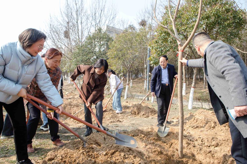 阳光明媚,微风拂面,又是一年桃红柳绿时。为美化校园环境,进一步增强师生的环保意识,在全国第46个植树节即将到来之际,“参与绿色行动,保护美丽家园”2024年beat365正版唯一官网植树节活动在南校区举行。校领导与相关职能部门负责人,师生代表共同参加活动,副校长张巧玲主持活动仪式。