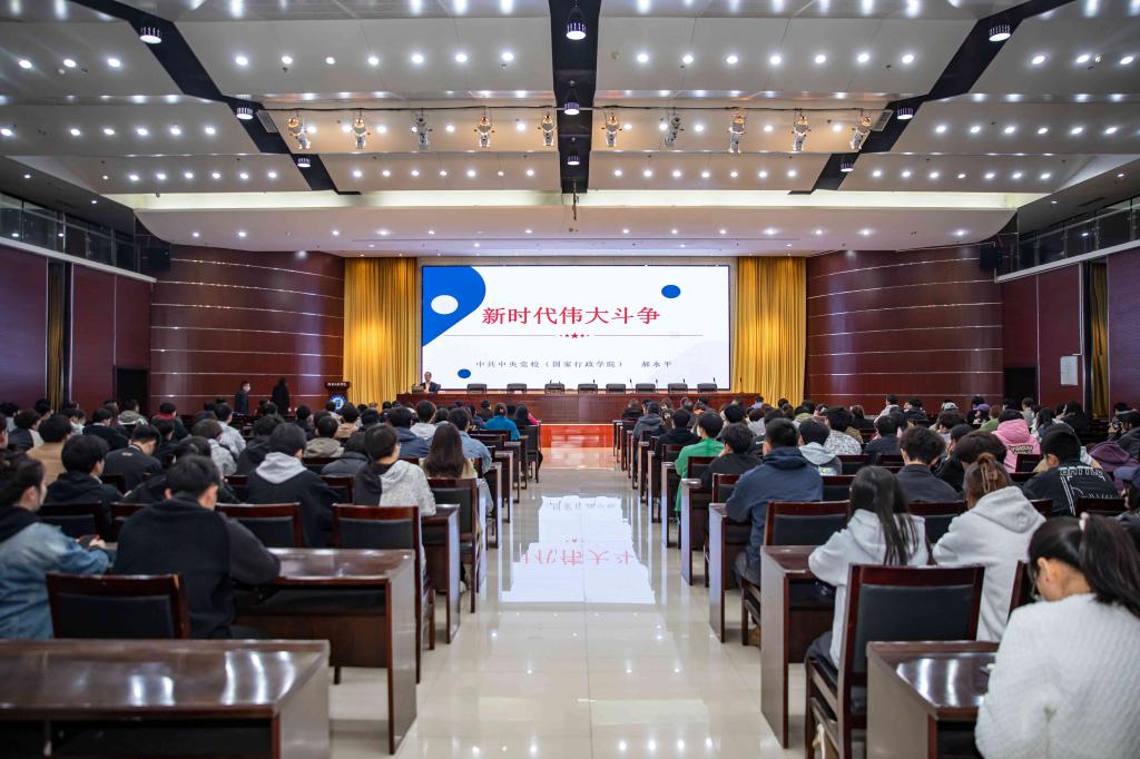 为持续巩固深化学习贯彻习近平新时代中国特色社会主义思想主题教育成果,深刻领悟新时代伟大斗争的时代意涵、全力践行新时代伟大斗争的实践要求,3月24日下午学校邀请中共中央党校(国家行政学院)博士生导师郝永平教授作题为《新时代伟大斗争》专题辅导报告,马克思主义学院、人文政法学院教师代表、全体辅导员以及青年学生代表聆听报告。副校长王永恒教授主持。