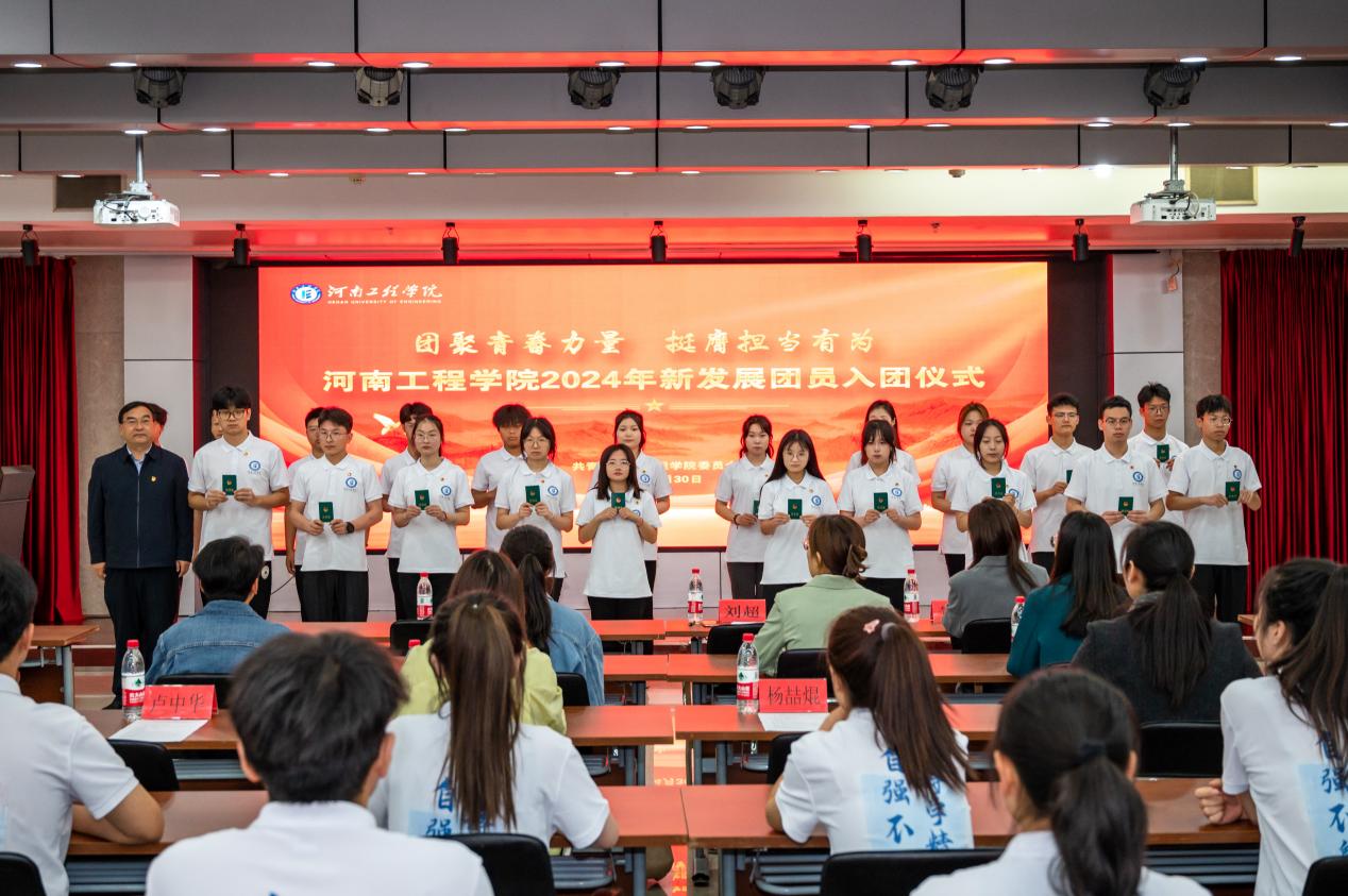 4月30日上午,beat365官网在龙湖校区综合楼一楼举行“团聚青春力量,挺膺担当有为”beat365正版唯一官网2024年新发展团员入团仪式。校党委副书记刘超出席仪式,校团委负责人、各学院团委负责人、新发展团员代表和优秀党团员代表参加仪式,仪式由校团委书记许卫华主持。