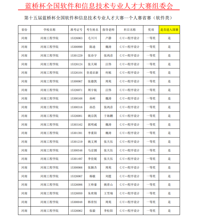 4月29日,第十五届“蓝桥杯”全国软件和信息技术专业人才大赛河南省赛区成绩揭晓,beat365官网总获奖人数达到205人,其中,获得河南赛区一等奖36项、二等奖87项、三等奖82项,这也是学校在该项赛事中取得新突破。