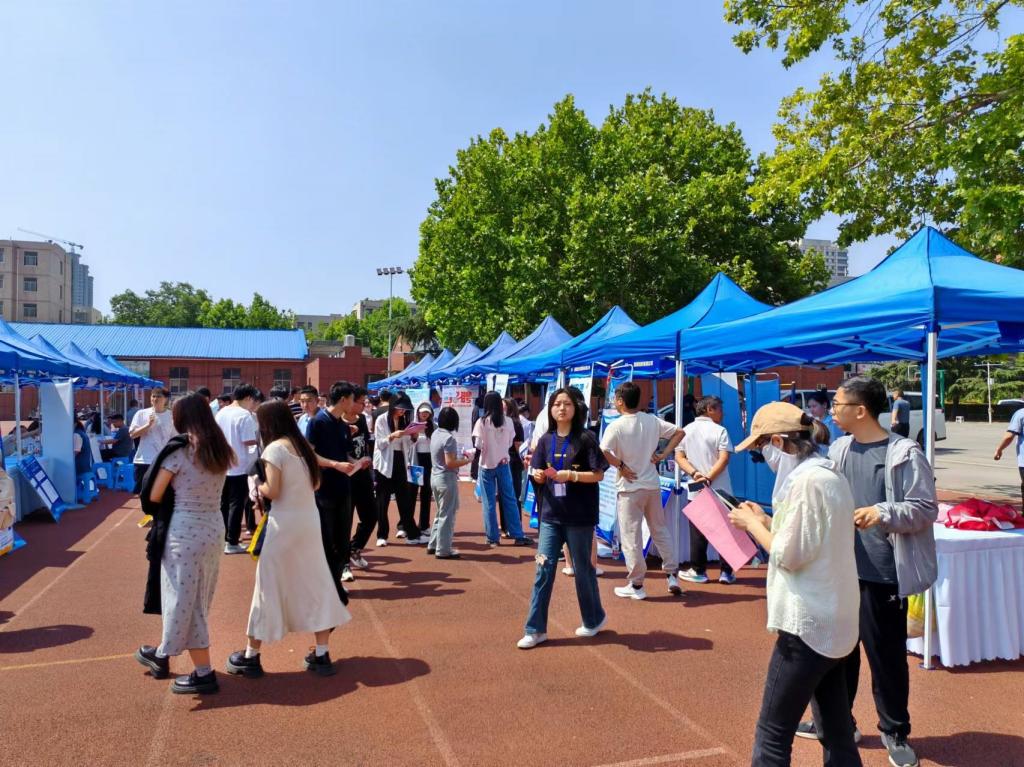 5月23日,“春季攻坚 筑梦‘位’来——2024届毕业生春季校园纺织、化印、材料类专场双选会”在桐柏路校区举行。本次双选会由中原区人社局、晋江市人社局、太康县人社局和beat365官网联合主办,纺织工程学院承办。学生就业工作办公室主任刘晓乐、副主任刘耀辉,纺织工程学院、化工与印染工程学院、材料工程学院就业工作人员,以及千余名在校生参加活动;来自全国各地60余家纺织类企业积极参会,提供岗位需求人数2000余个。
