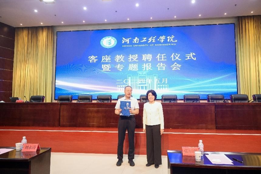 李利英为张军强颁发客座教授聘任证书并合影留念。