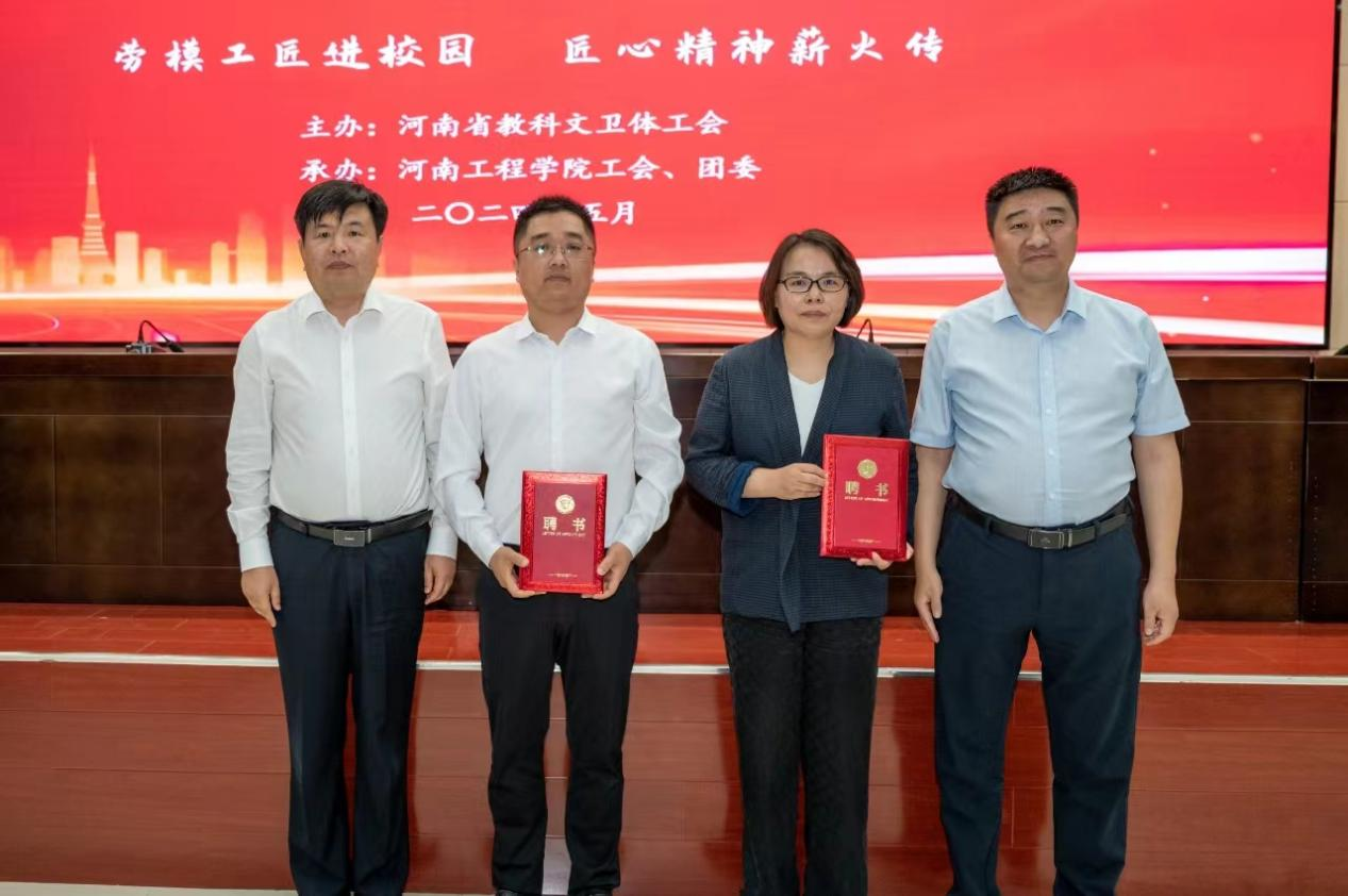 为了让同学们能够更好地走近劳模、学习劳模,beat365官网聘请霍楠楠、张巧玲两位劳模为“劳模工匠兼职辅导员”,张学勇和赵红亮向两位劳模颁发了聘书。