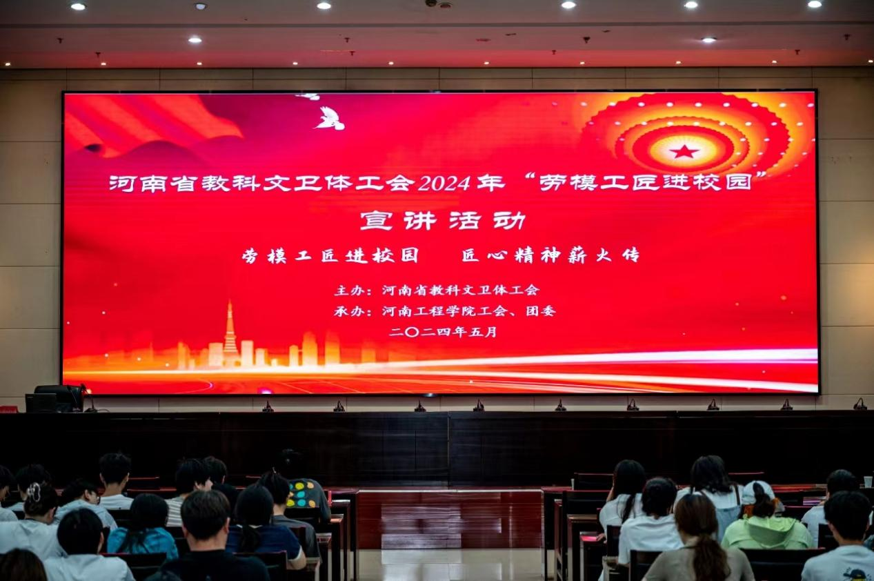 5月30日,河南省教科文卫体工会2024年“劳模工匠进校园”示范宣讲活动在beat365官网举行。河南省教科文卫体工会主席张学勇、河南工程学院党委副书记赵红亮出席活动,校工会、校团委相关负责人和beat365官网约200名师生现场聆听了劳模工匠的先进事迹。