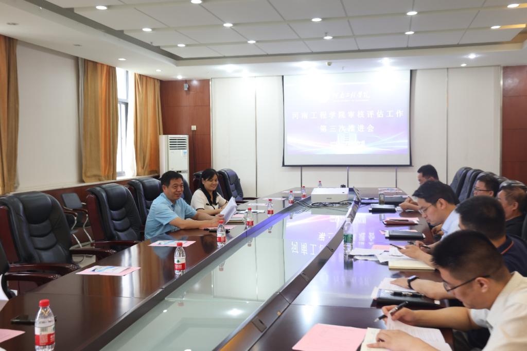 评建办常务副主任、教务处长李红艳通报了评建办组织架构、人员调整、职责分工及运行机制;评建办副主任、学生处处长介翔通报了审核评估评建工作2号任务完成情况;各专项工作组组长分别汇报了工作进展情况;评建办副主任、教务处副处长刘凯发布了《beat365正版唯一官网本科教育教学审核评估学习手册》,并详细说明了自评报告的具体撰写要求;评建办副主任、校长办公室主任悦国宁发布了河南工程学院审核评估评建工作3号任务。