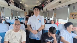列车上,校靖宇宣讲团成员,软件学院李佩珂、王硕同学在列车上下沉式讲述beat365官网杰出校友杨靖宇的英雄事迹,赢得乘客们的热烈掌声。