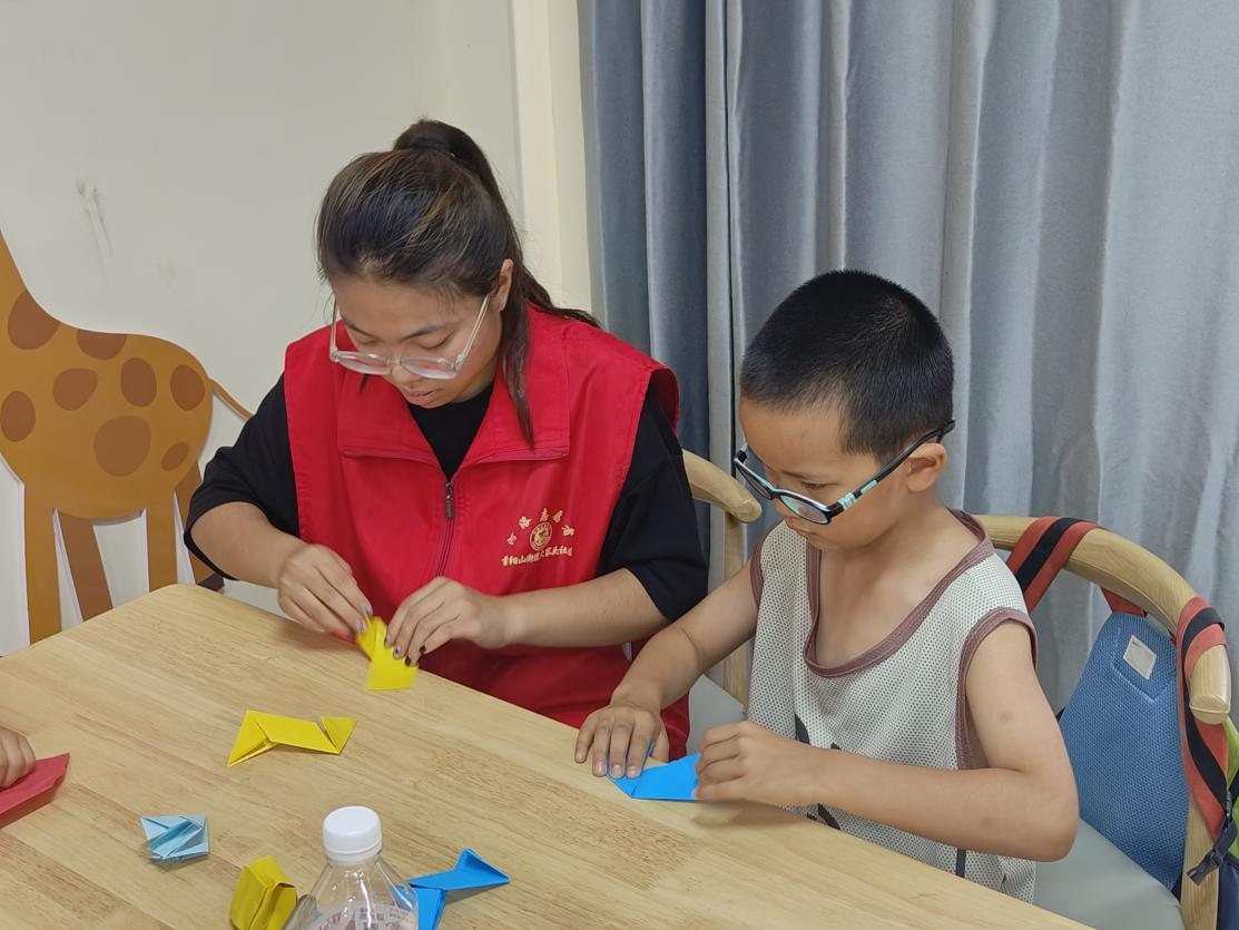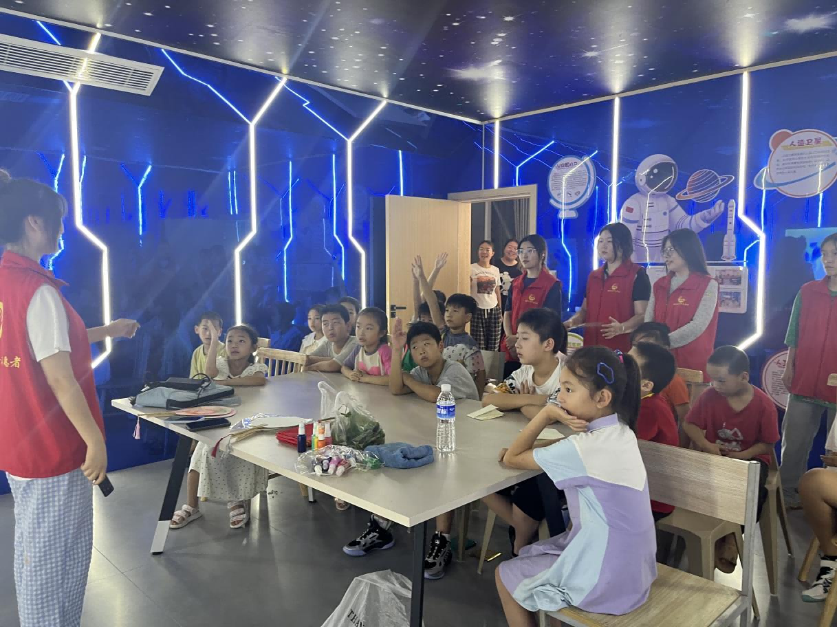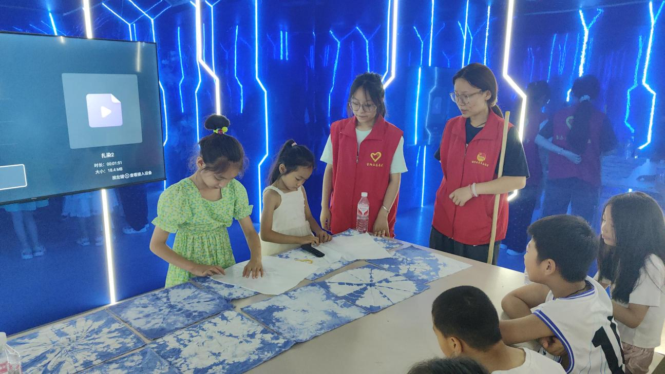 志愿者们结合“思想引领、健康生活、身心成长、防溺水防诈骗、科技创新、快乐学习、艺术素养、文化传承”等主题,设计了“植物喷画”“我有一顶‘花帽子’”“非遗扎染”,“回忆历史—文化绘制”“翻转课堂之甲骨文的‘奇思妙想’”等多项特色美育课程,力求在课程教育中融入爱国教育、红色文化、传统文化等元素,激发孩子学习兴趣,提高艺术修养,陪伴孩子们度过一个七彩假期。