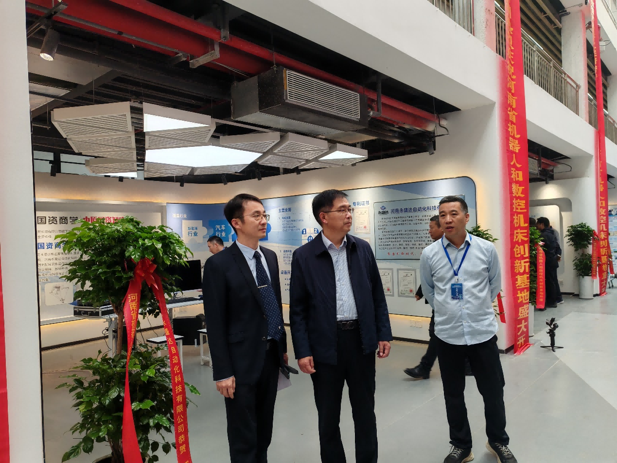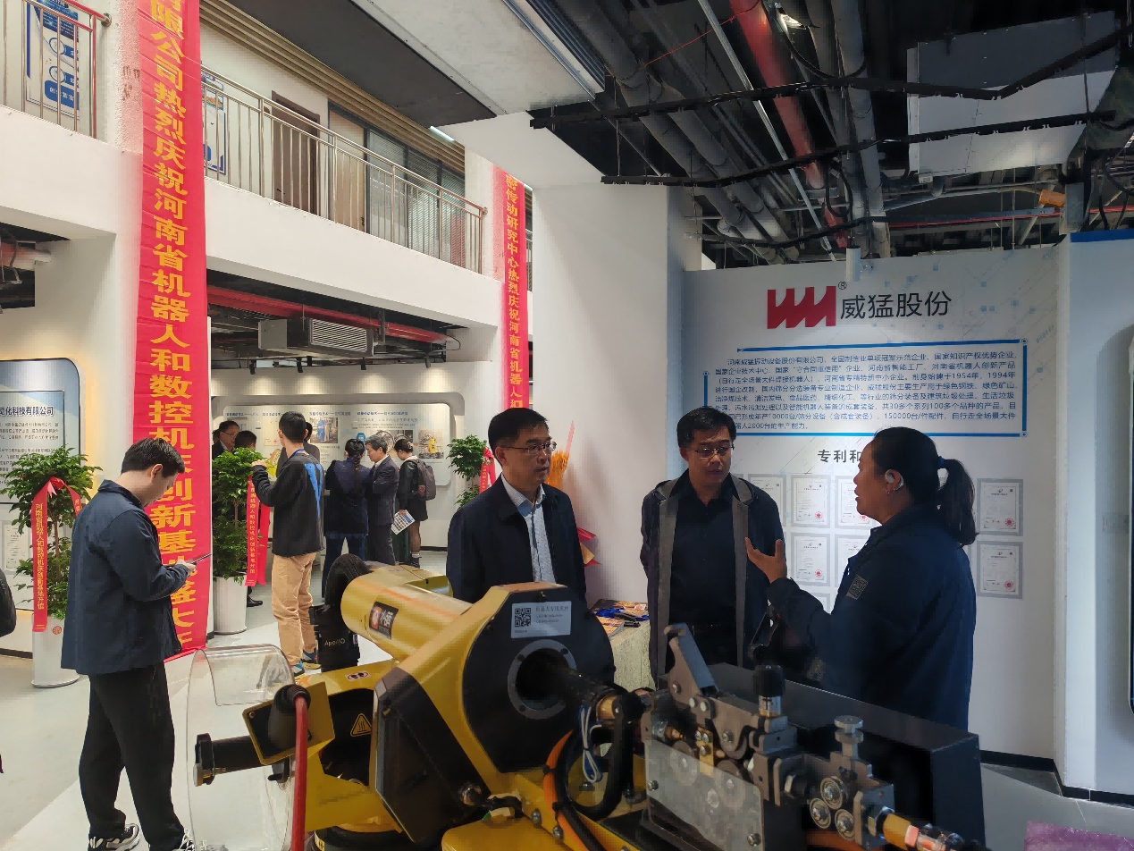 10月31日上午,由管理工程学院参与承办的河南省机器人和数控机床产业创新基地开馆仪式暨“机器人+”应用产业创新发展论坛,在中原区芝麻街双创园举行。beat365正版唯一官网副校长张瑞林、郑州市中原区委副书记、区长邓英文、河南省机器人与数控机床行业协会会长王济昌等高校、政府、协会领导出席开馆仪式与巡馆活动。管理工程学院院长黄德金主持发展论坛。