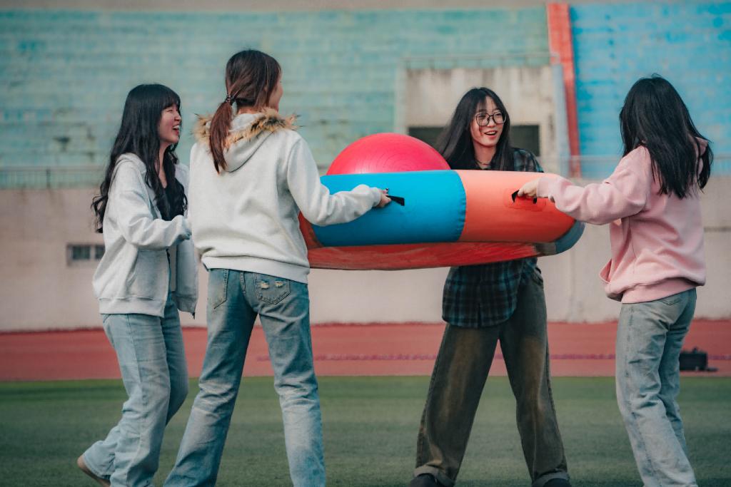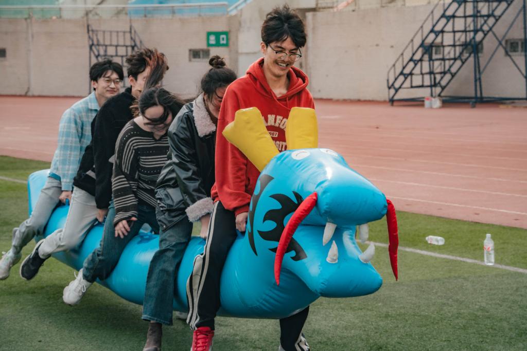 本次活动共设“旱地龙舟竞速”“众星捧月”“趣味碰碰球”“袋鼠运瓜”等6个项目。活动过程中,参赛学生团结协作、配合默契。在“旱地龙舟竞速”活动中,参赛学生动作整齐划一,喊着“左右!左右!……”的口号在旱地“划船”;在“众星捧月”活动中,参赛学生相互配合,在紧张而愉快的氛围中,控制球始终保持在手中的气垫上,完成规定动作任务。一个个项目有序开展,欢呼声、掌声将氛围推向高潮,学生在团体活动中体验信任、激发潜能、收获成长。
