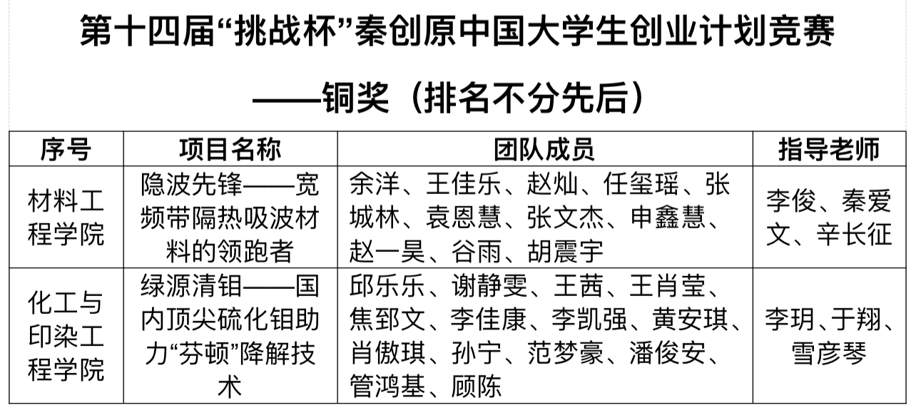 10月29日—11月2日,由共青团中央、教育部、人力资源社会保障部、中国科协、全国学联、陕西省人民政府主办的第十四届“挑战杯”秦创原中国大学生创业计划竞赛决赛在西安交通大学举办。beat365官网2个项目入围国赛并获得铜奖。