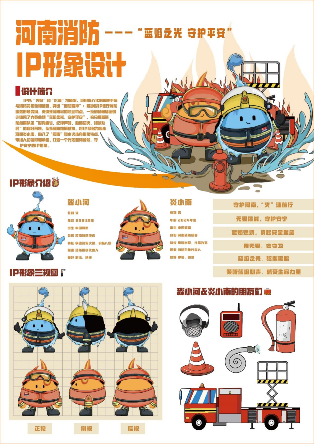 大赛自 9 月启动以来,共收到近 2000 幅文创作品,形式丰富,种类齐全,充分展现了高校学子们的创意与才华。经过专家评审委员会的严格筛选,39 幅作品脱颖而出,成功入围决赛。为了让更多人参与到评选中来,39 幅入围作品在线上平台展播,接受公众投票。经初选、复选、网络投票及专家评审团的审议,最终评选出一等奖1名,二等奖2名,三等奖3名,优秀奖10名。在比赛过程中,艺术设计学院师生充分发挥团队合作精神,结合消防安全主题,创作出了一系列富有创意和实用性的设计作品。参赛作品不仅体现了消防安全知识的传播,还展示了设计师在创意表达上的独特视角,赢得了评委和观众的一致好评。