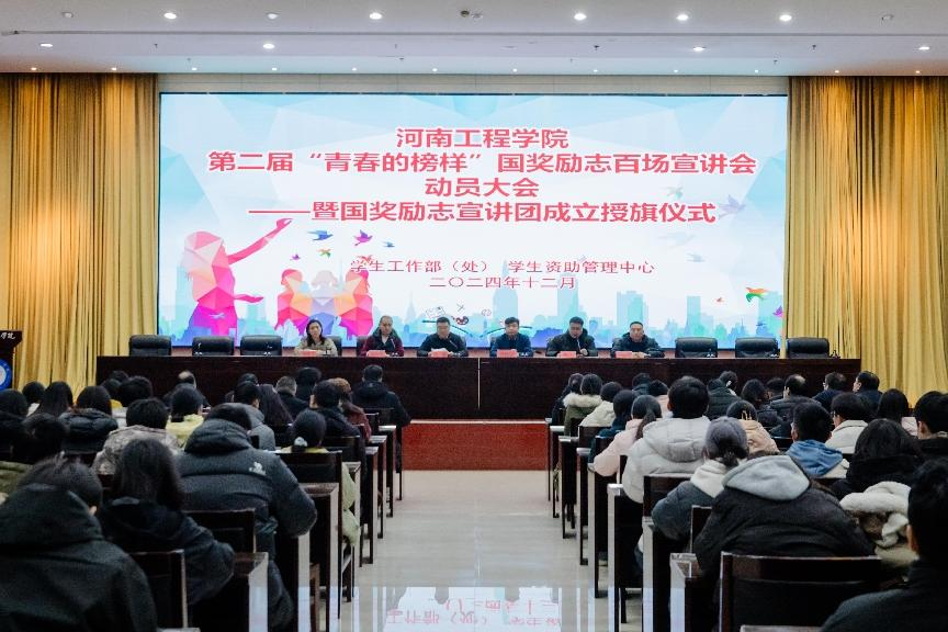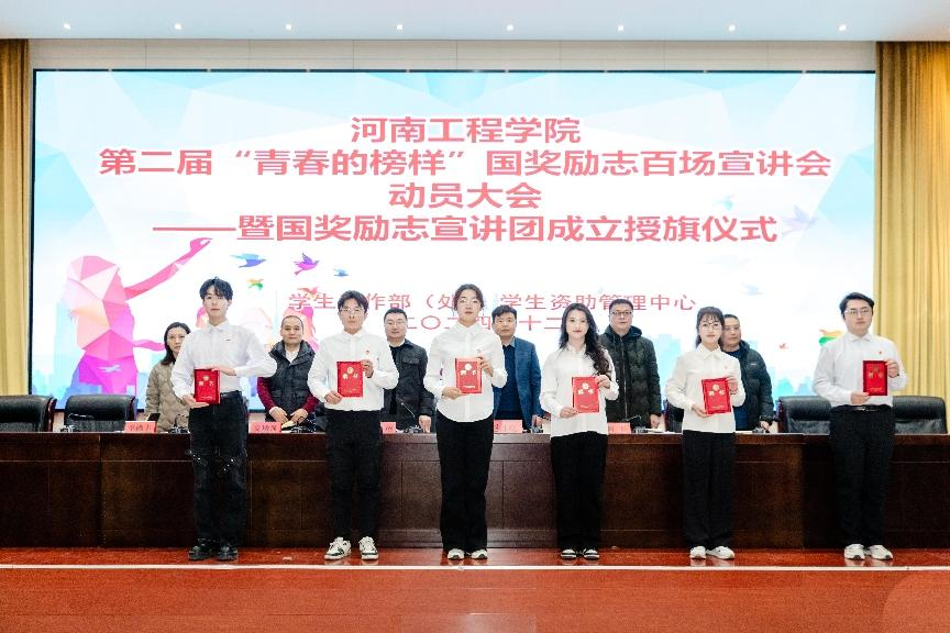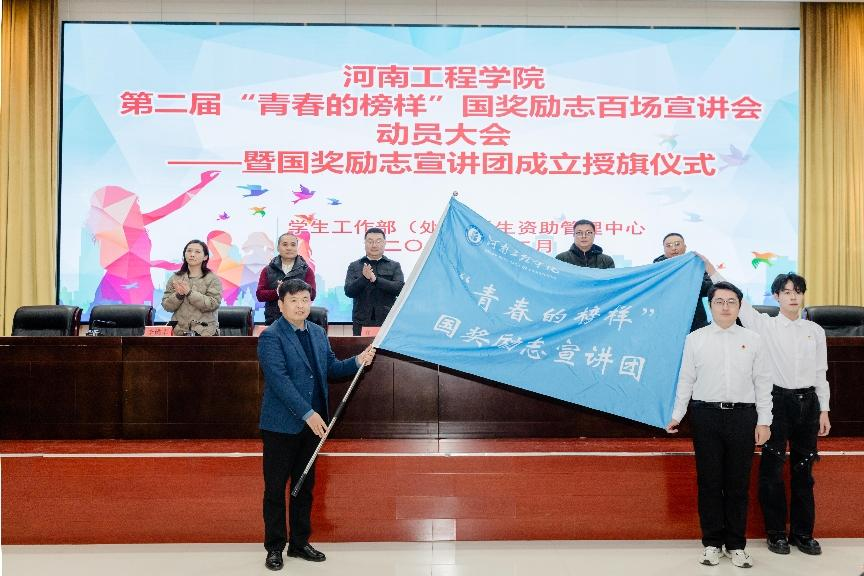 会上,学生处相关负责人宣读《关于开展第二届“青春的榜样”国奖励志宣讲活动的通知》、校党委宣传部相关负责人宣读《学校“国奖励志宣讲团成员”名单》、与会领导和老师为学校“国奖励志宣讲团成员”颁发聘书、赵红亮为学校“国奖励志宣讲团”授旗。教师代表以“责任”为题,从理解与支持、激励与引导、感恩与回馈等方面分享了资助工作心得体会;国家奖学金和国家励志奖学金获奖学生代表发言慷慨激昂,表达了对国家资助的感激之情以及为实现中华民族伟大复兴而努力读书的决心。