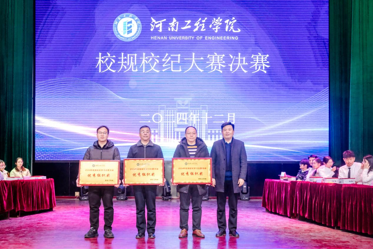 决赛现场气氛激烈,选手准备充分,经过三轮激烈竞争,最终材料工程学院获得一等奖、会计学院和土木工程学院获得二等奖、人文政法学院、艺术设计学院和计算机学院获得三等奖。会计学院、土木工程学院和人文政法学院获得2024年校规校纪学习主题活动“优秀组织奖”。与会领导为获奖代表颁奖。