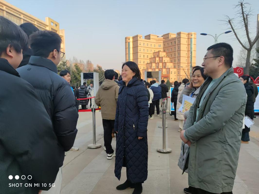 李利英认真听取了beat365官网研考准备工作的整体情况和考试组织情况,实地查看了考务办公室、视频监考室等工作场所,详细了解考场设置、人员配备、考务组织、视频监考、试卷保密等工作情况。在考生入场处,李利英实地检查“智能安检门”配备使用情况,检查安检流程。与考生进行亲切交流,询问考生的考试准备情况,鼓励考生不要紧张,保持良好心态,预祝取得良好成绩。