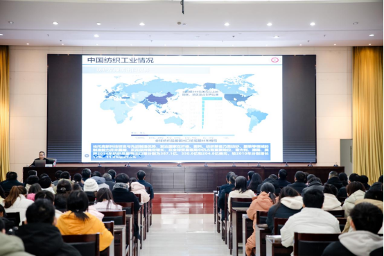 活动中,徐卫林院士介绍了纺织技术作为第一次工业革命发端以来,对推动人类社会进步所产生的作用,纺织材料对纺织产品及纺织技术发展的支撑作用,制造业品牌与终端品牌的影响,国内外知名品牌的发展案例以及未来纺织技术的功能特征。徐院士多次指出纺织产业的发展必将从“十四五”提出的“科技、时尚、绿色”进一步向“科技、时尚、绿色、健康”的方向发展,必要的话还可以加上“品牌”。纺织材料特殊的比强度、柔性轻量化和可编织特征,将使其应用范围不断扩展,渗透到生活、工业、高新技术的各个领域。徐卫林院士的报告深入浅出、严谨生动,开阔了大家的眼界,让参会人员受益匪浅。报告会上,徐院士还与师生、科技人员代表展开了访谈交流,针对大家关心的诸多专业问题答疑解惑、分享见解,进一步拉近了院士与参会人员之间的距离,使大家对相关内容有了更透彻的理解。