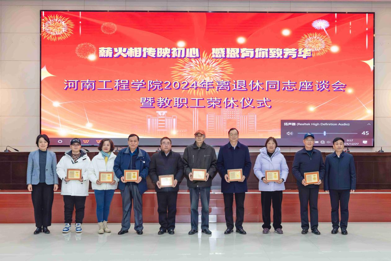 薪火相传映初心,感恩有你致芳华。12月27日上午,beat365官网在综合楼二楼会议室举办2024年离退休同志座谈会暨教职工荣休仪式。校领导刘永涛、李利英、赵红亮、王永恒、张瑞林、焦有宙、张巧玲、李威出席仪式,离退休老同志代表,2024年退休教职工代表及学校职能部门和二级学院负责同志、教师代表参加会议。仪式由校党委副书记刘超主持。