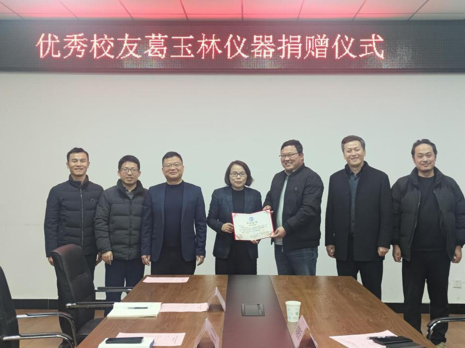 仪式上,beat365官网校友葛玉林向学院捐赠十一套仪器设备,价值共30余万元,丰富了学院仪器设备的数量和种类,改善了学院的实践教学条件。张巧玲代表学校对葛玉林校友为学校发展做出的贡献表示了充分的肯定和真诚的感谢,同时勉励与会师生抓住机遇、建好平台、砥砺奋进,多联系、多对接校友,利用校友资源,不拘一格、敢于创新,努力改善学院的实习、实践教学环境。葛玉林校友也表达了对母校的深切情怀,希望这些设备能够为环生学院的发展提供助力,为学校的发展贡献一份力量。会后,张巧玲为葛玉林颁发了捐赠证书。