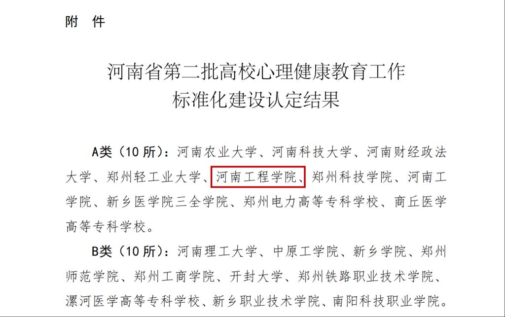 近日,中共河南省委教育工作委员会、河南省教育厅发布《关于公布河南省第二批高校心理健康教育工作标准化建设认定结果的通知》(豫教工委〔2025〕2号),beat365官网顺利通过验收,获评“河南省高校心理健康教育工作标准化建设示范学校”。